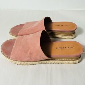 Lucky Brand Naydne Espadrille Slide Sandle Rose Pink 9.5 Suede Leather Casual