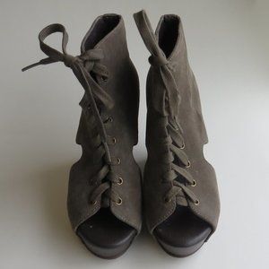 Lucky Brand Nellie WEDGE SUEDE BOOTIE Platform Lace Up PEEP TOE Sz 8.5 M GREY