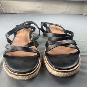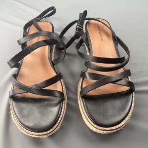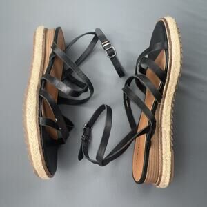 Lucky Brand Nemelli Black Leather Espadrille Sandals 8.5 Strappy Boho Summer