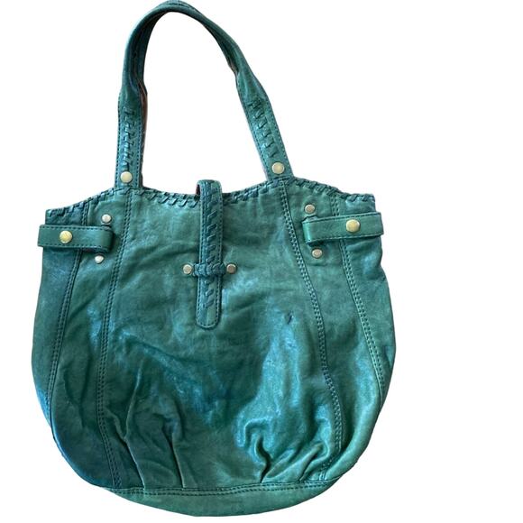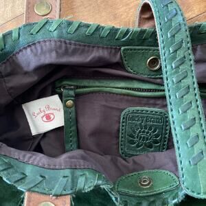 Lucky Brand Olive Green Soft Italian Leather Laced Hobo Tote Book Shoulder Bag