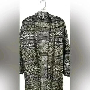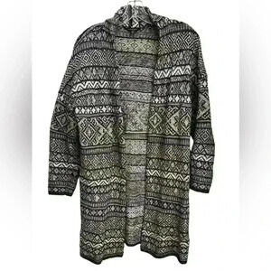 Lucky Brand Open Cardigan Sweater Size M/M Womens Aztec Black White Excellent