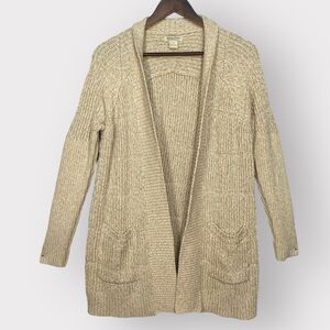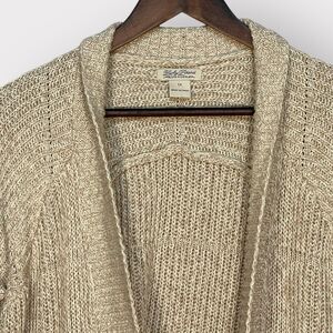 Lucky Brand Open Cardigan Women 1X Beige Knit Raglan Long Sleeve Pockets Q17