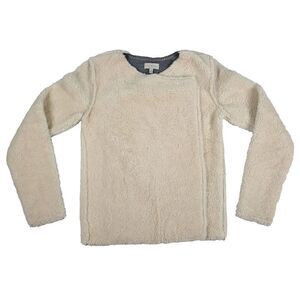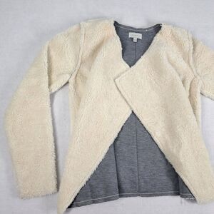 Lucky Brand Open Cardigan Womens Small Petite Faux Fur Sweater Beige
