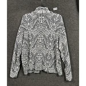 Lucky Brand Open Front Cardigan Sweater Womens Size M Black White Paisley Print