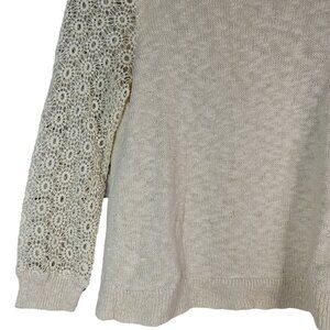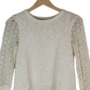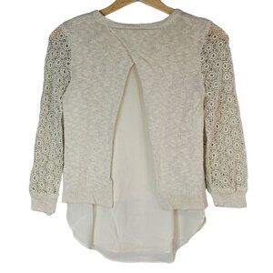 Lucky Brand Open Knit Top Cream Size XS Lace Chiffon Split Back Cinema Linen