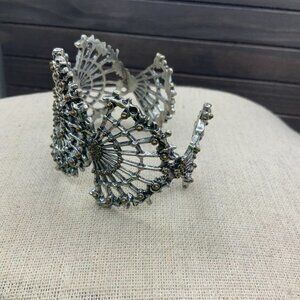 Lucky Brand Openwork Pave Silver Tone Cuff Bracelet