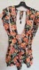Lucky Brand Orange Floral Flutter Short Sleeve Plunge V Neck Romper Shorts