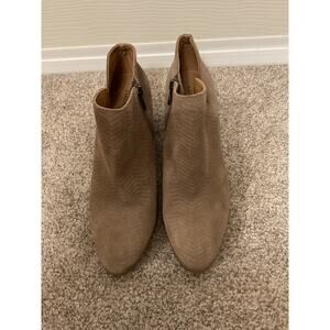 Lucky Brand Parneesa Perforated Tan Suede Stacked Heel Bootie, 8.5
