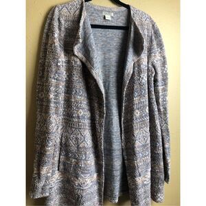 Lucky Brand Pastel Knit Cardigan Size L Aztec Print Long Sleeve Duster
