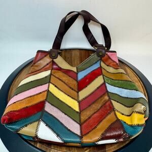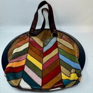 Lucky Brand Patchwork Chevron Multi-Color Leather Hippie Chic Tote Purse Bag