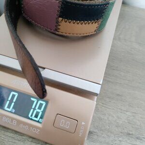 Add a touch of bohemian flair to your outfit with this Lucky Brand patchwork belt. Made of high-quality leather, this adjustable belt features a unique patchwork design in a variety of colors. The belt is 1.5 inches wide and comes in size 28, making it a great fit for most women.