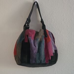 Lucky Brand Patchwork Suede Shoulder Tote Bag. Good Vintage Condition. Large.