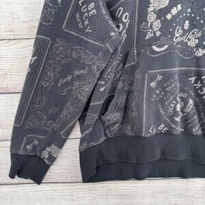 Item: Lucky Brand Patchwork logo Hoodie Sweatshirt Mens Large Gray Black