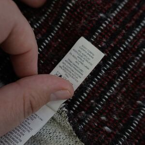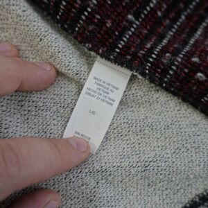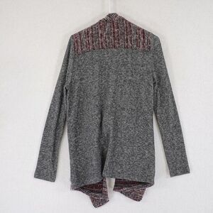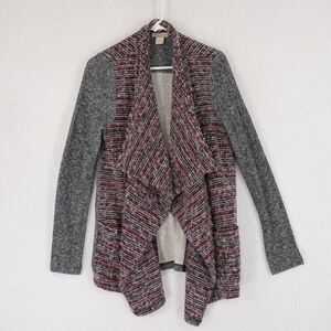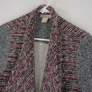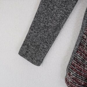 Lucky Brand Patchwork Heather Gray Red Cardigan Sweater Large Tweed Wool Acrylic