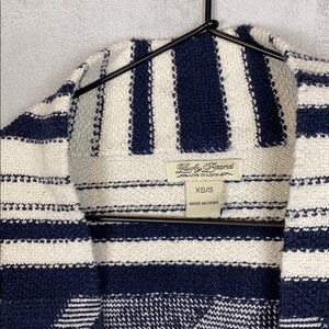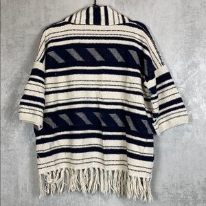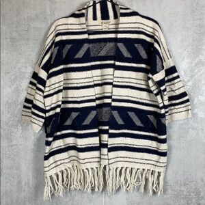 Lucky Brand Navy and cream patterned open shawl cardigan. Super cute with denim!