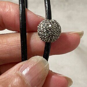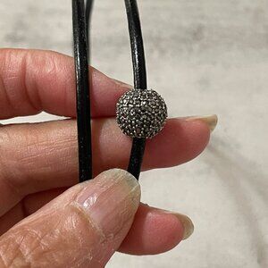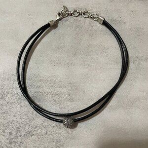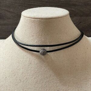 Lucky Brand Pave Crystal Fireball Two Strand Black Leather Choker Necklace