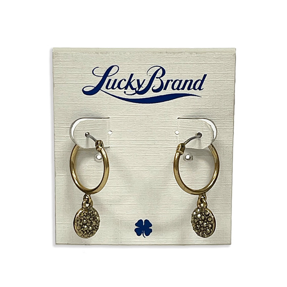 Lucky Brand Pave Drop Earrings Gold-Tone Hoops Sparkly Crystal Charms Click Top