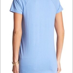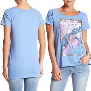 - Crew neck - Short sleeves - Front graphic print with metallic detail - Side slits - Knit construction - Approx. 26" length (size S) - Imported