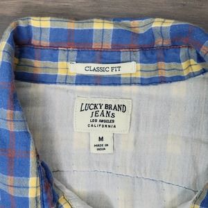 Lucky Brand Pearl Snap Long Sleeve Plaid Flannel Button Front Men's Medium Blue Yellow Red