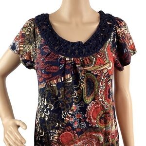 Lucky Brand Peasant Style Top Size S Multicolor Mixed Print