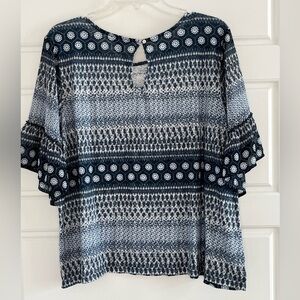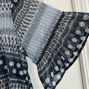 Lucky Brand Blue & White Peasant Boho TopBell Slerve