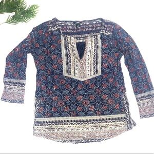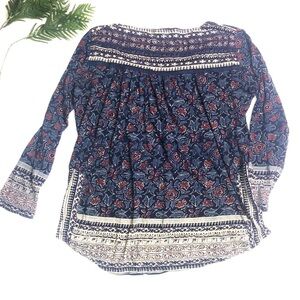 Peasant v-neck top 3/4 sleeve with slits on each side.