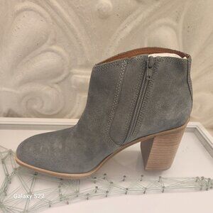 Lucky Brand "Pellyon" Grey/Blue Leather Booties. NWT (just the stitch fix tag). Size 8.5. No rips/stains or tears. One scuff (very minor, not a rip) on the boot, see the final picture. Side zips. No box .Heel height: 3.45 inches. Block Heeled. Color is a grey with blue hint, almost a grey teal color. So nice. Smoke free home. No odors. All offers are welcome. Thank you!