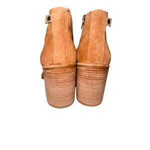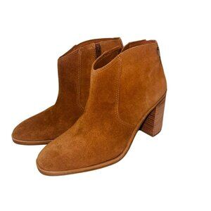 Lucky Brand Pellyon Suede Ankle Boot Stacked Block Heel Side Zipper 8 Retro Boho