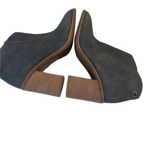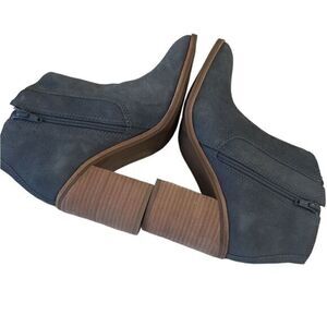 Lucky Brand Pellyon Slate Gray Suede Zip Wooden Western Ankle Boots Sz 7 New
