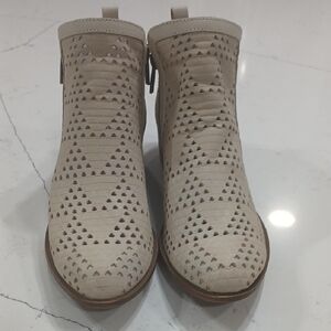 Lucky Brand Perforated Tan Ankle Booties Leather Sz8 Gentle Used