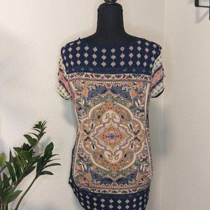 Lucky Brand Persian Carpet Blue Scoop Neck Short Sleeve