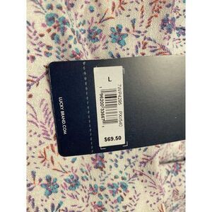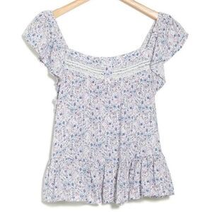 Lucky Brand Phoebe Crochet Trim Top L Flutter Sleeves White & Lilac Floral NEW
