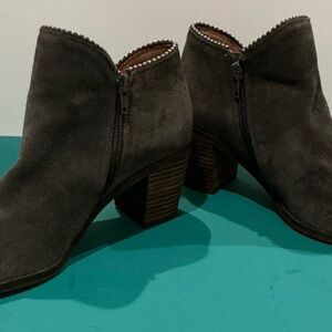 Stylish gray suede ankle boots with side zippers. Shoes are in excellent condition-Never worn outside