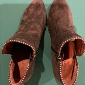 Lucky Brand Pincah 2 Studded Edge Distressed Gray Suede Ankle Boots Size 8.5