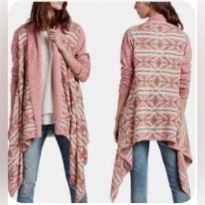 Lucky Brand Pink Aztec Knit Swing Waterfall Cardigan Open Blanket Size M
