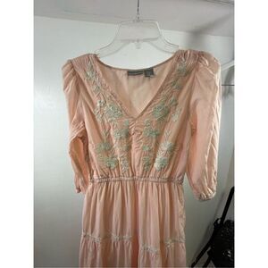 Lucky Brand Pink Boho Cottage Core Embroidered Maxi Dress Size XS