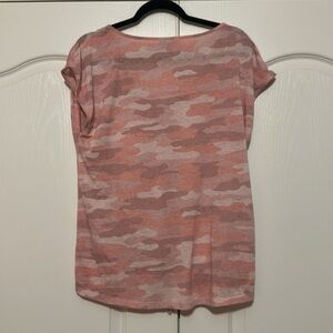Stylish pink camo top with a trendy tie-front design. Perfect for casual outings.