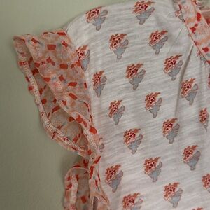 Lucky Brand Pink Floral Blouse with Ruffle Sleeves