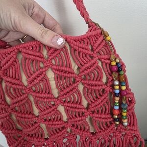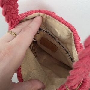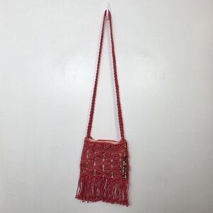 Lucky Brand Pink Macrame Beaded Fringe Tassels Boho Summer Crossbody Bag Purse