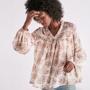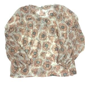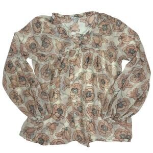 Lucky Brand Pink Poppy Exploded Floral Sheer Chiffon Long Sleeve Boho Top Medium