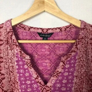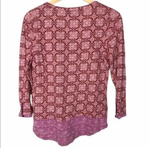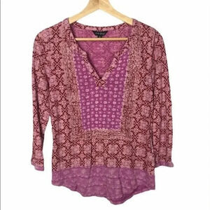 Lucky Brand Pink & Red V-Neck Printed Long Sleeve S