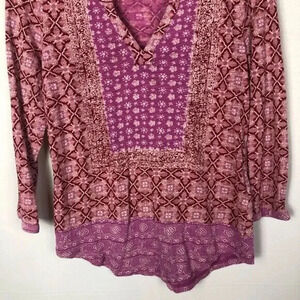 Lucky Brand Pink & Red V-Neck Printed Long Sleeve