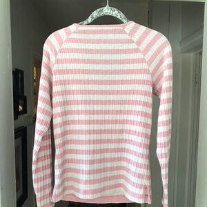 "Lucky Brand Pink Striped Ribbed Lace Up V-neck Sweater Top sz L