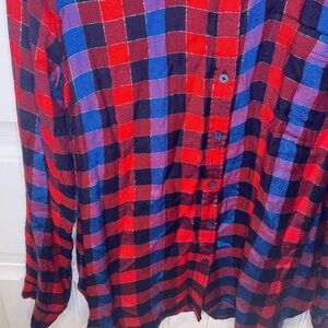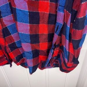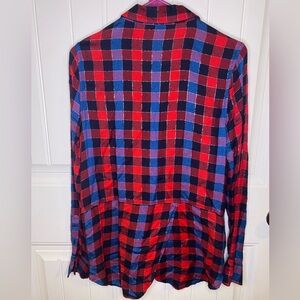 Lucky Brand Plaid Blue and Red sparkle button up with open layered back