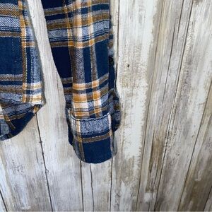 Stylish plaid shirt featuring a classic blue and yellow design. Perfect for casual outings or layering.