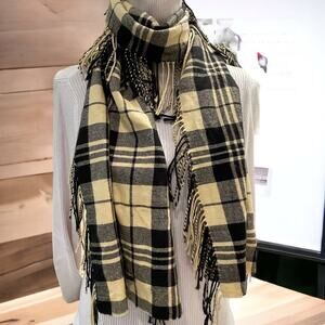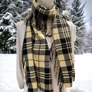 Lucky Brand Plaid Scarf Wrap Tarton Blanket Winter Soft Minimalist Fringe Preppy