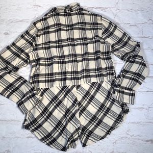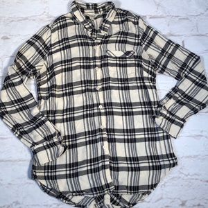 Lucky Brand Plaid flannel top tunic Size Small Black White Button down Soft