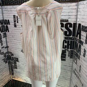 Lucky Brand Plus 2X Ivory Striped Button Tie Waist Sleeveless Top