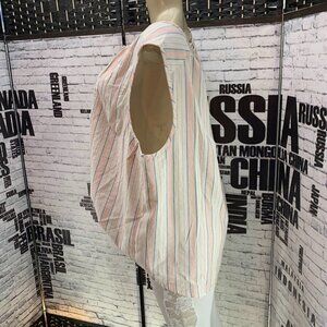 ITEM: Lucky Brand Plus 2X Ivory Striped Button Tie Waist Sleeveless Top