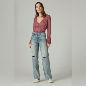 Lucky Brand Pointelle-Trim Surplice Montebello Rose Burgundy size Large